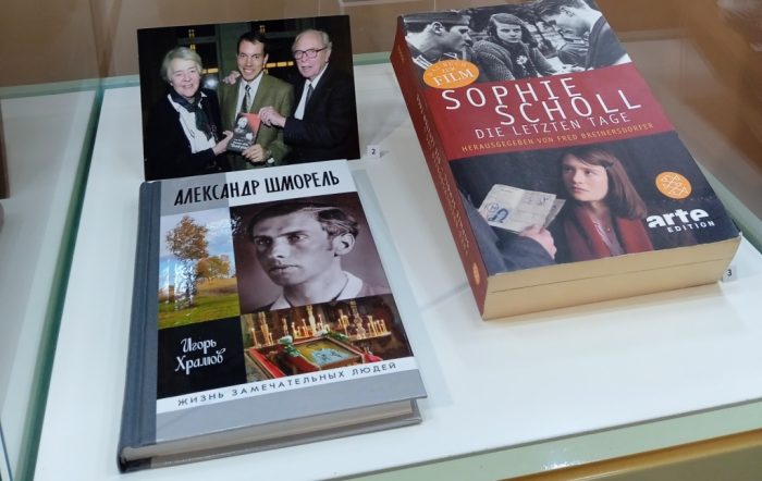 Представители всех школ города Тюмени, приглашенные на открытие, получат для своих библиотек книжные комплекты: «Моабитские тетради» Джалиля, биографию Шмореля, написанную И.В. Храмовым, в минувшем году переизданную в серии «Жизнь замечательных людей», а также книгу М.П. Девятаева «Побег из ада» предоставленную партнером проекта Фондом памяти Михаила Петровича Девятаева (Казань).