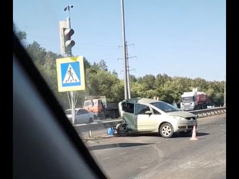 В Оренбурга на Нежинском шоссе столкнулись две иномарки. Видео опубликовали в сети очевидцы аварии.