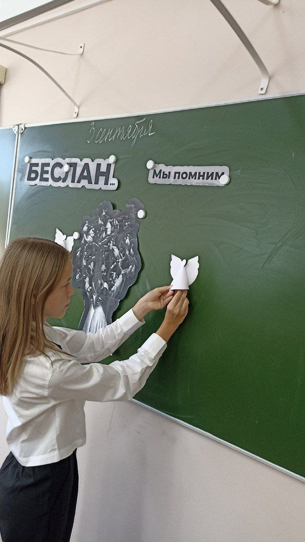 Цветы сегодня возложили также к памятнику Герою России Александру Прохоренко, расположенному на улице Новой. В школах Оренбурга прошли минуты молчания в память о погибших. На уроках школьники клеили белых голубей мира.