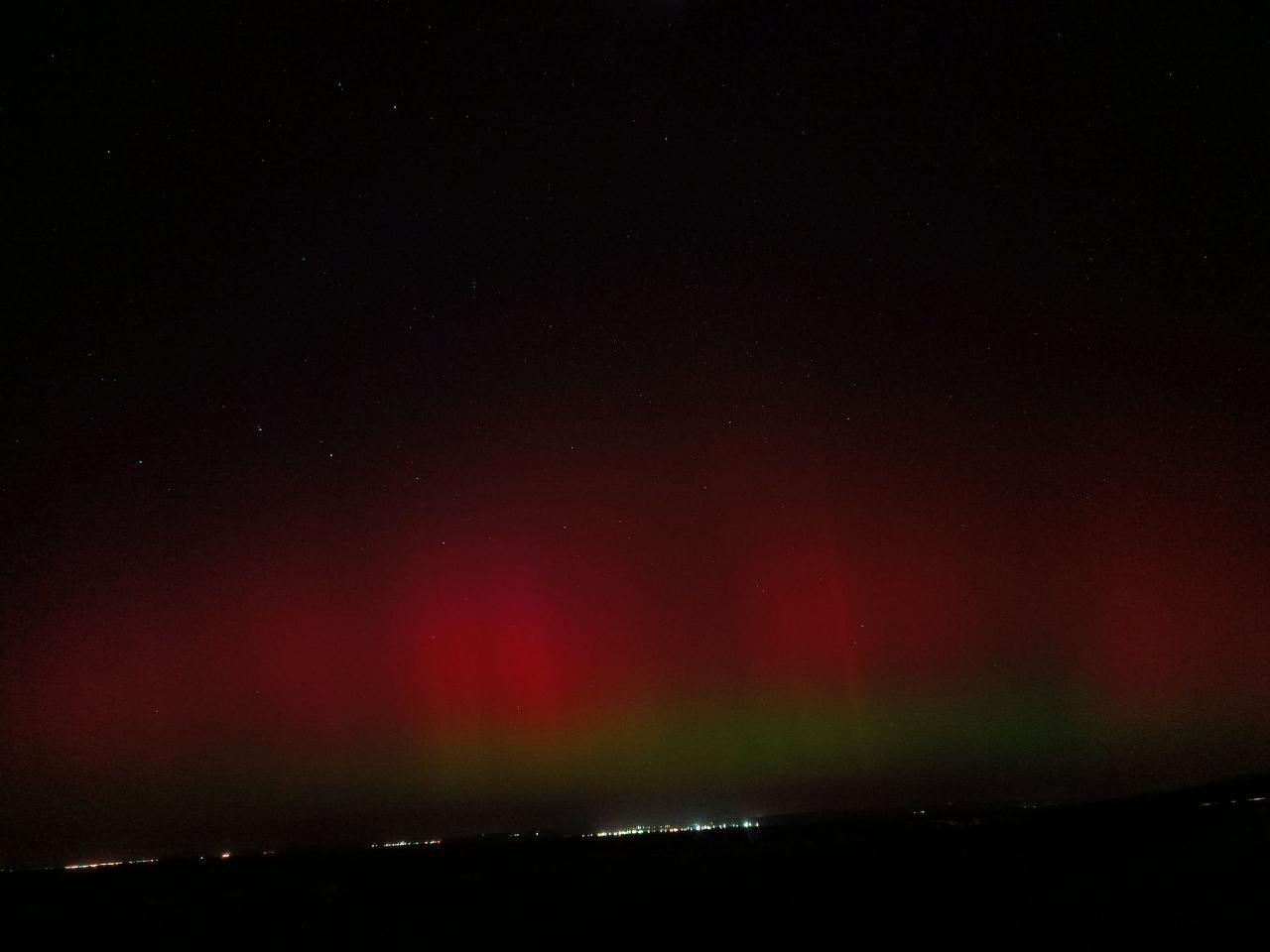 Причина полярного сияния — вспышка на Солнце. Земля прошла через облако плазмы. Из-за этого полярное сияние было видно не только в северных, но и в средних широтах.