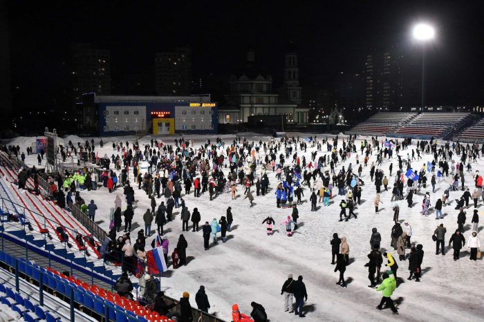 В Оренбурге на лёд вышли порядка 3 000 любителей коньков и активного отдыха. Основной площадкой «Вечера на коньках» стал стадион «Оренбург». На ледовую площадку одновременно вышли около трех тысяч оренбуржцев в возрасте от 3 до 70 лет.